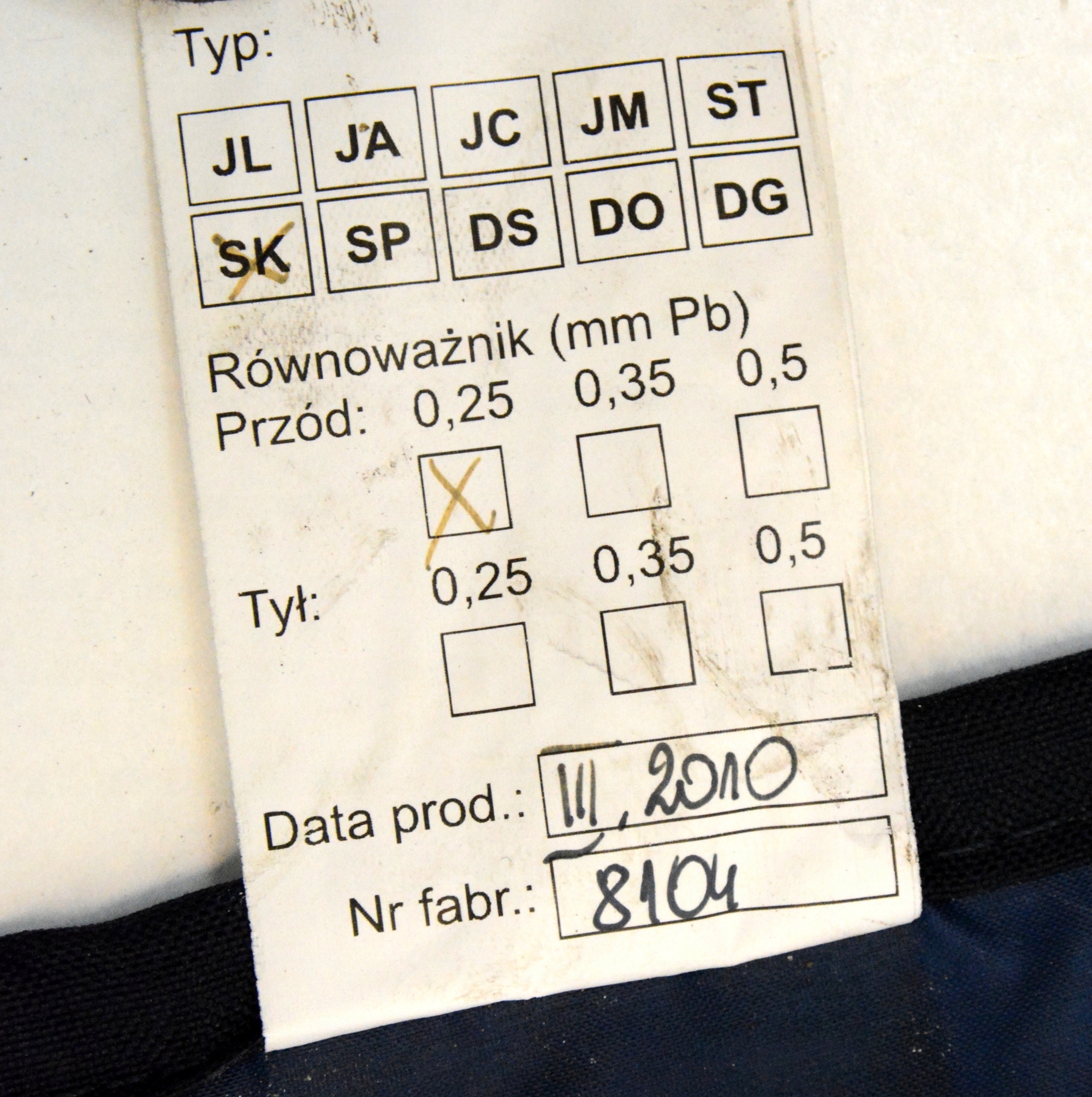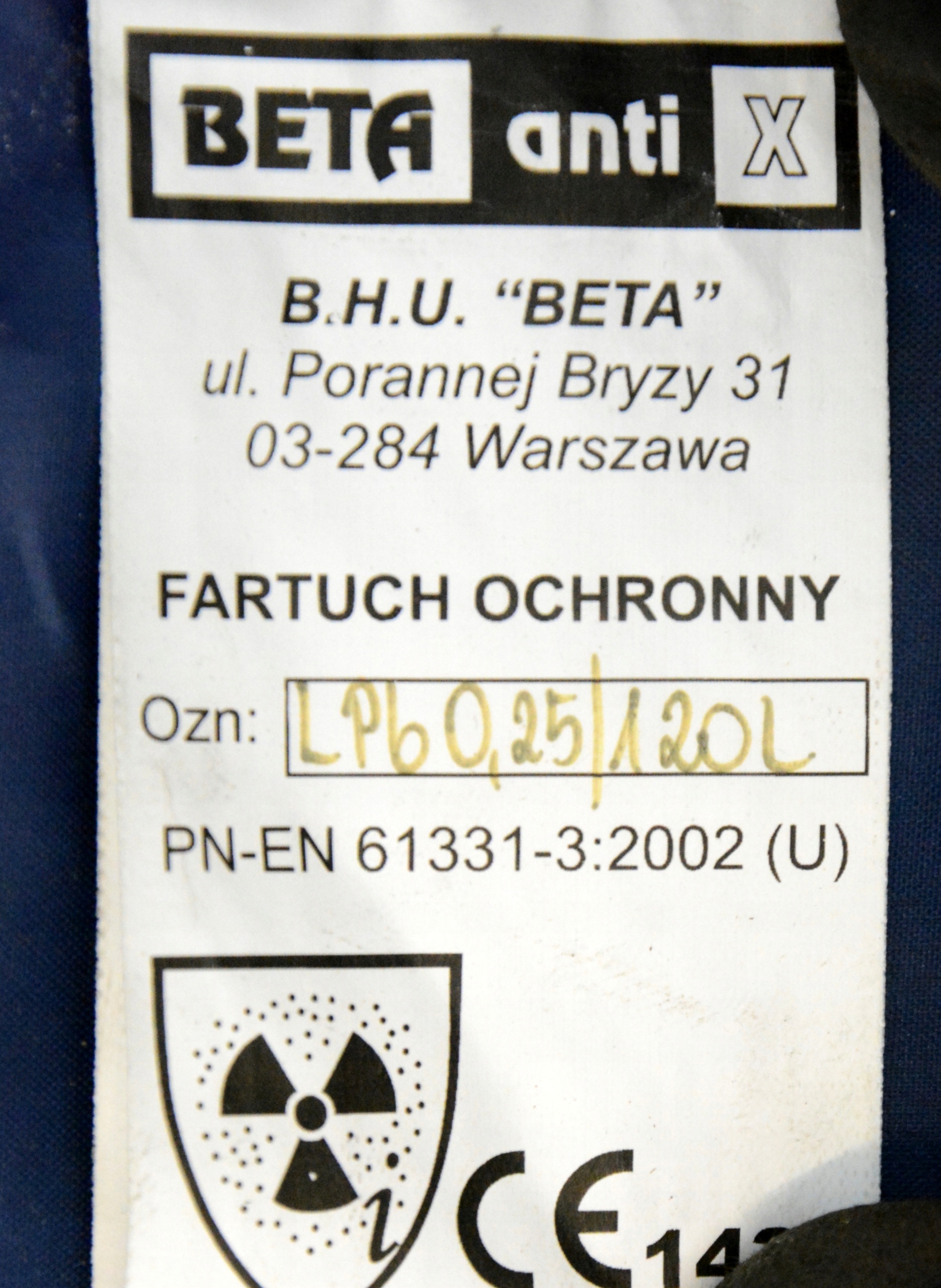 Na sprzedaż fartuch ochronny RTG z osłoną tarczycy z zapasów wojskowych.