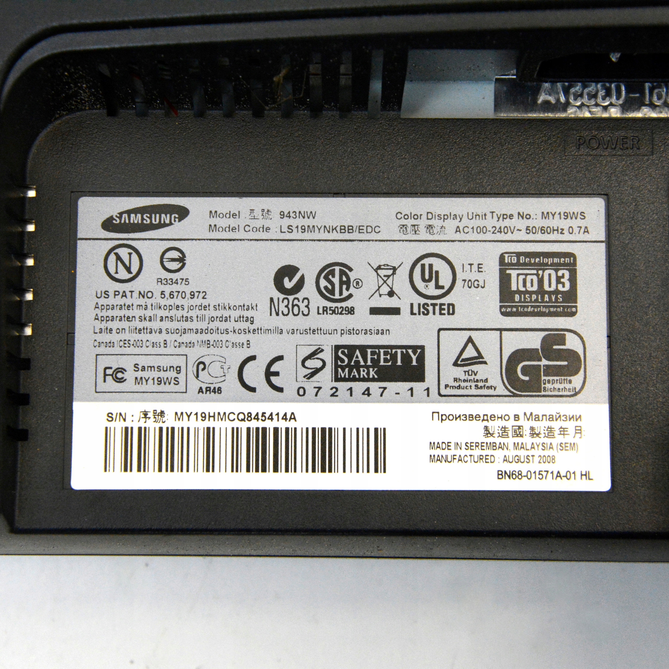Na tej aukcji model: Samsung SyncMaster 943 NW