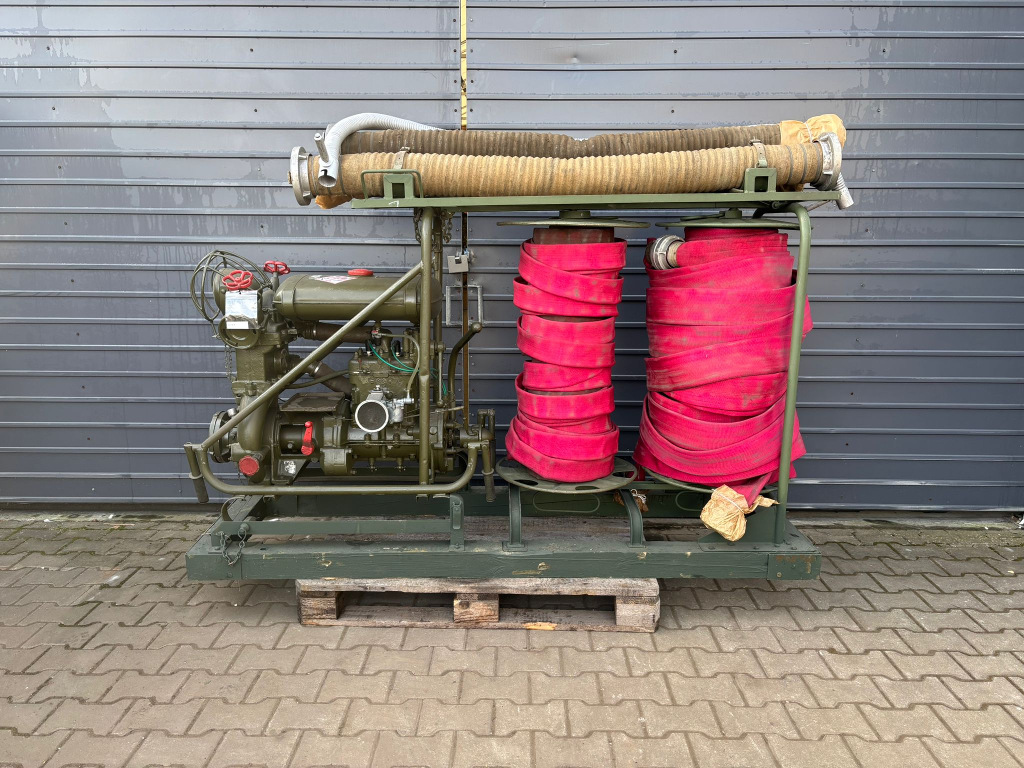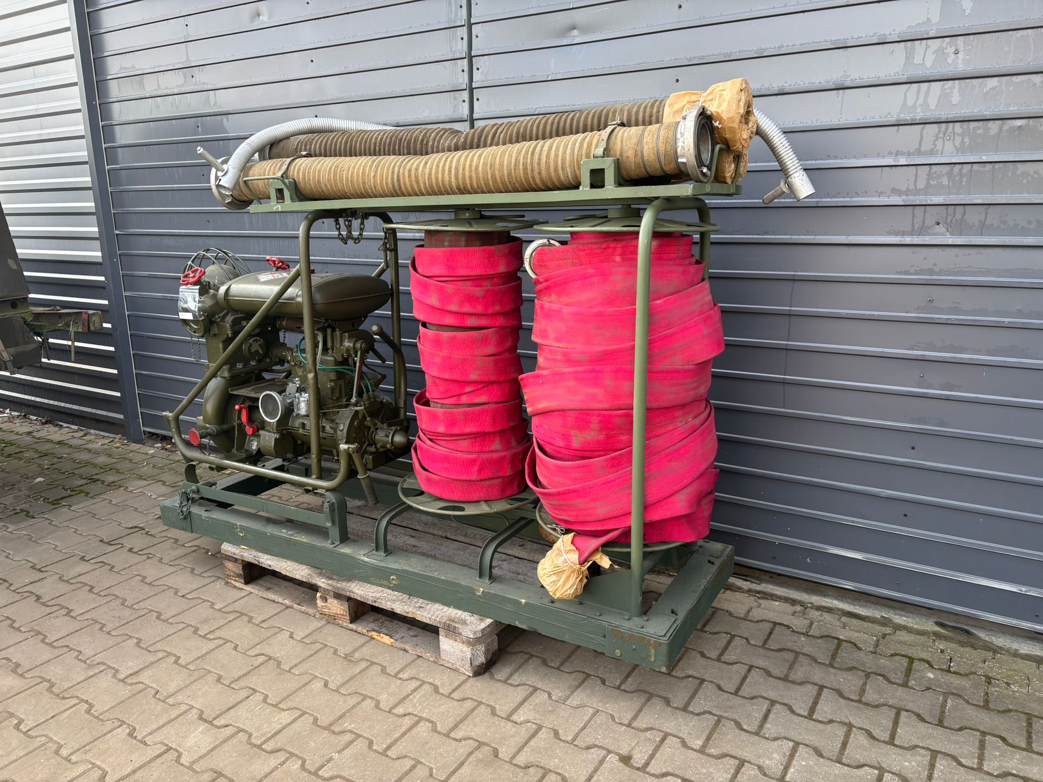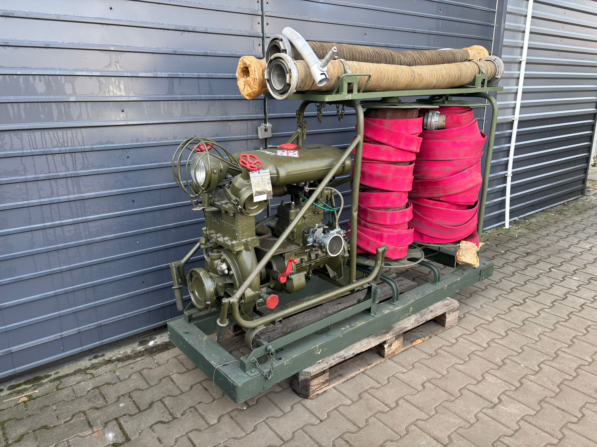 W zestawie 6 węży pożarniczych 2 i 3 cale oraz 3 węże ssawne.