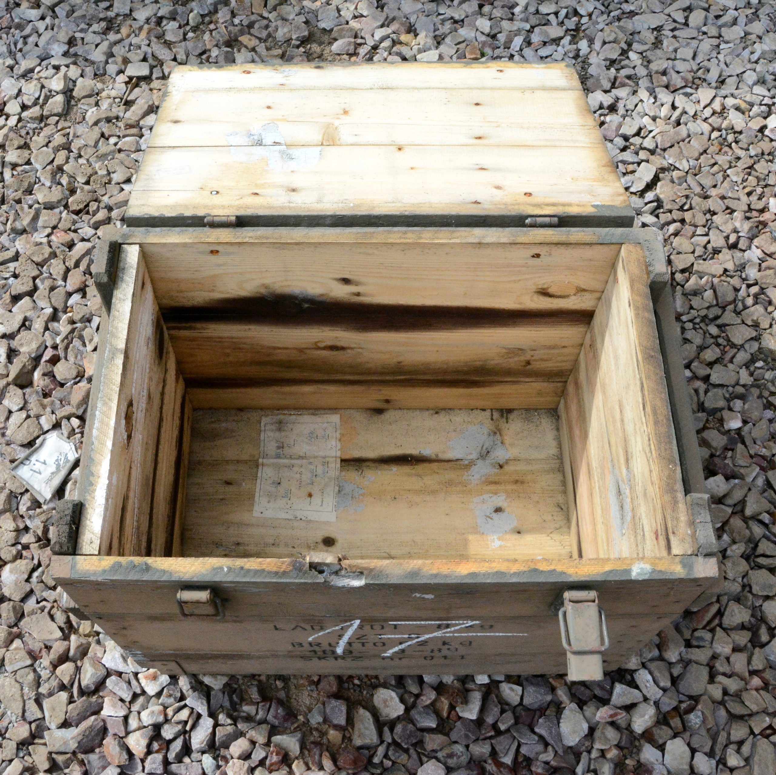 Z uwagi na długie magazynowanie skrzynki posiadają przebarwienia, odpryski farby.